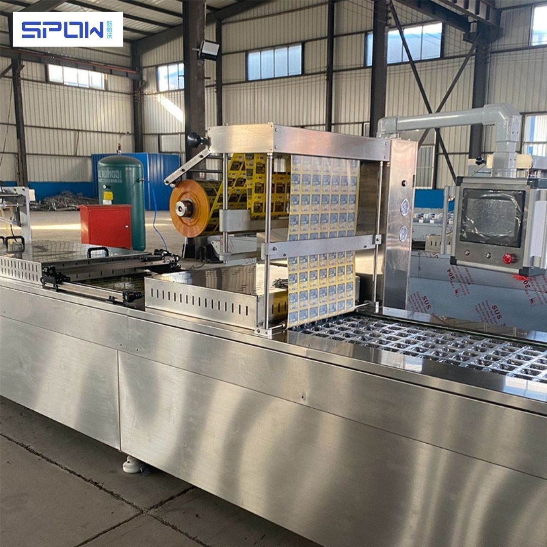 • The Thermoforming Packaging Machine uses pre-formed molds to seal products with shrink film in a continuous production line.